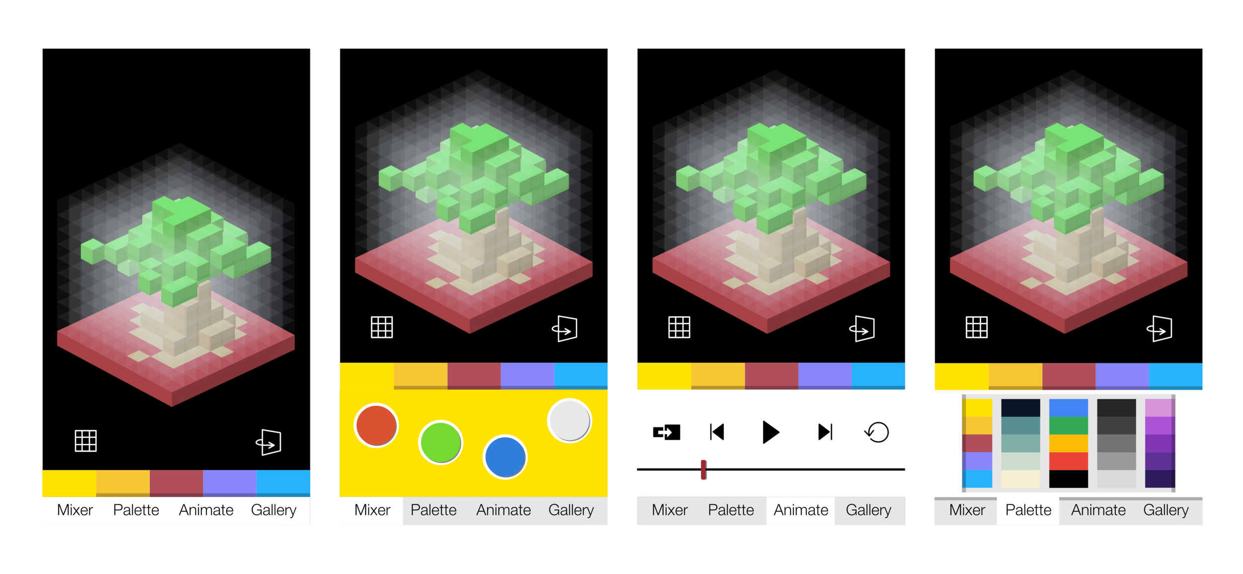 Work In Progress designs for the touch version of the approachable 3d modelling tool.